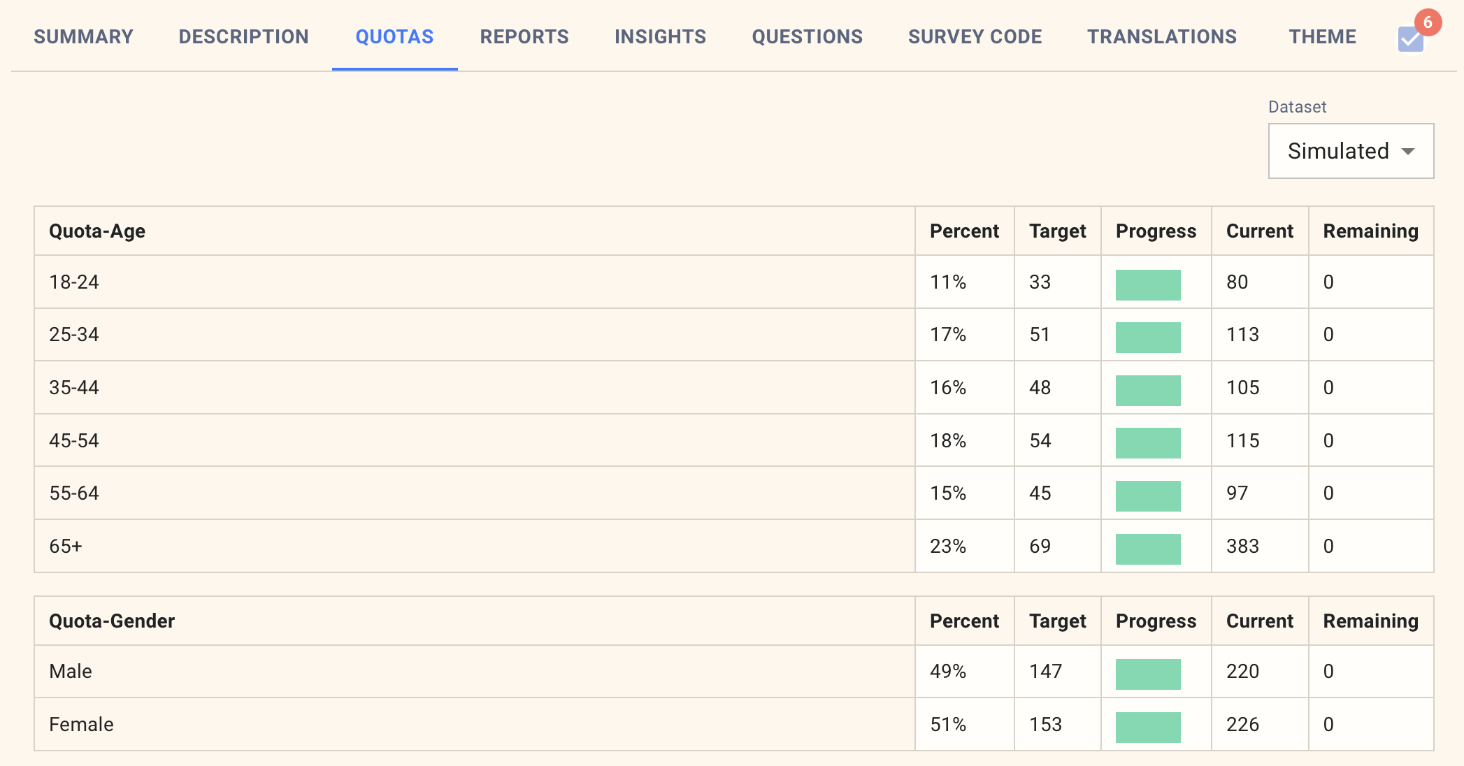Because the reports only include respondents who completed your survey, these will often not match the percentages in the audience, but they will ensure that your results are nationally representative.