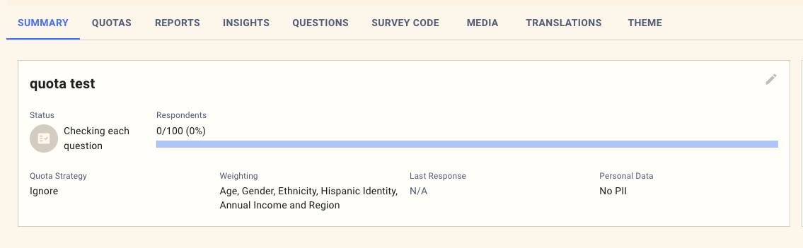 Weighting is always set up every time you specify a quota. For example, if you set up to survey with the US Genpop standard screener, you can see demographics in the quota tab as follows: