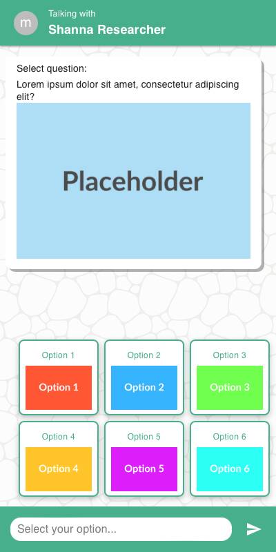 Options appear as buttons or image tiles depending on input.