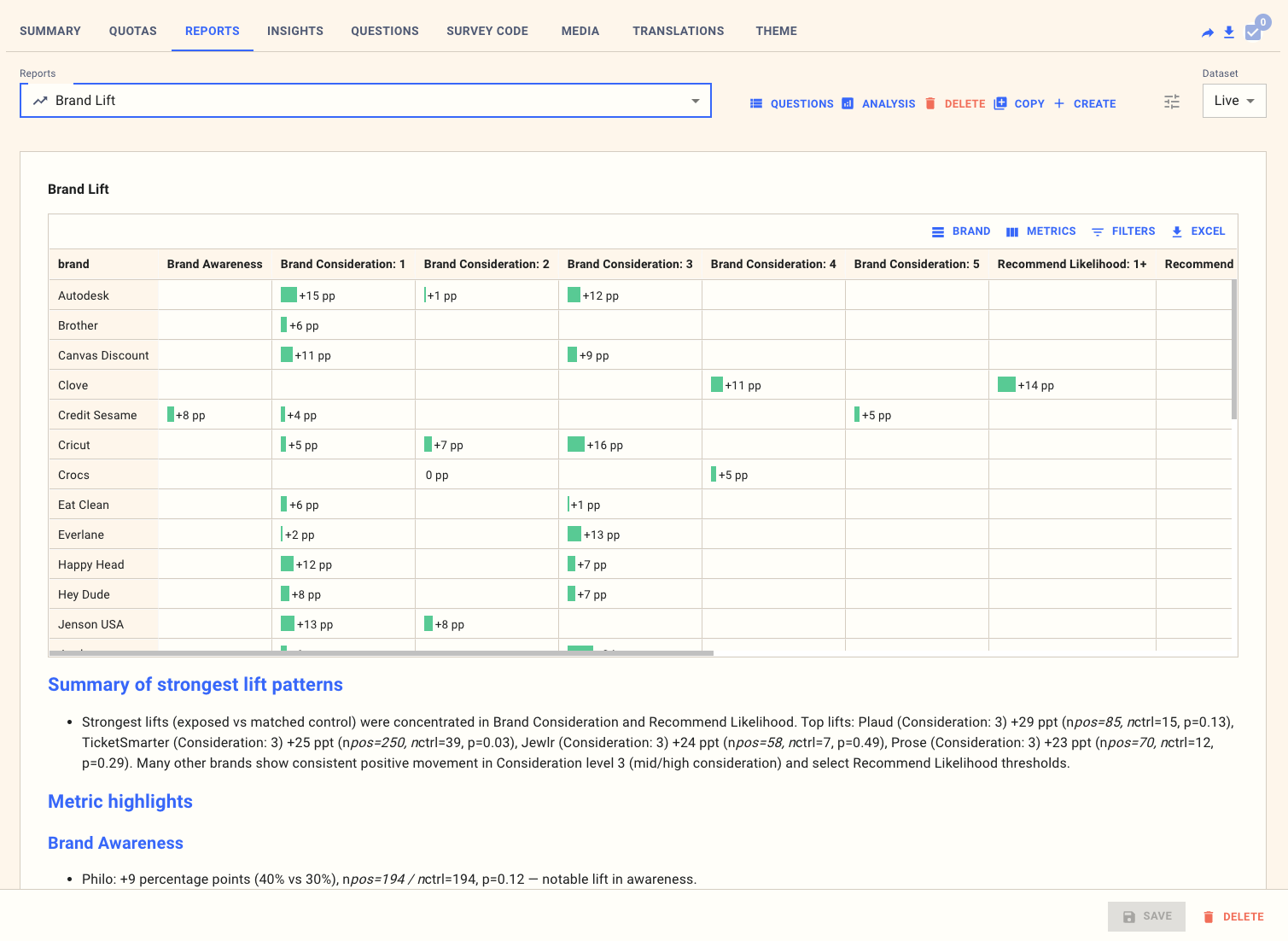 Lift reports isolate the impact of exposure by comparing exposed respondents to a carefully matched control group. When configured correctly, they provide one of the clearest and most defensible ways to demonstrate whether a stimulus genuinely worked.
